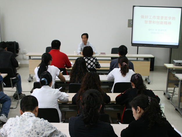 朱强副校长用通俗易懂的语言,从“学好哲学,终身受用”;“学哲学,用哲学”;“客观地看,科学地干”等三个方面,就如何做好自己的本职工作进行了生动、深刻地阐述。